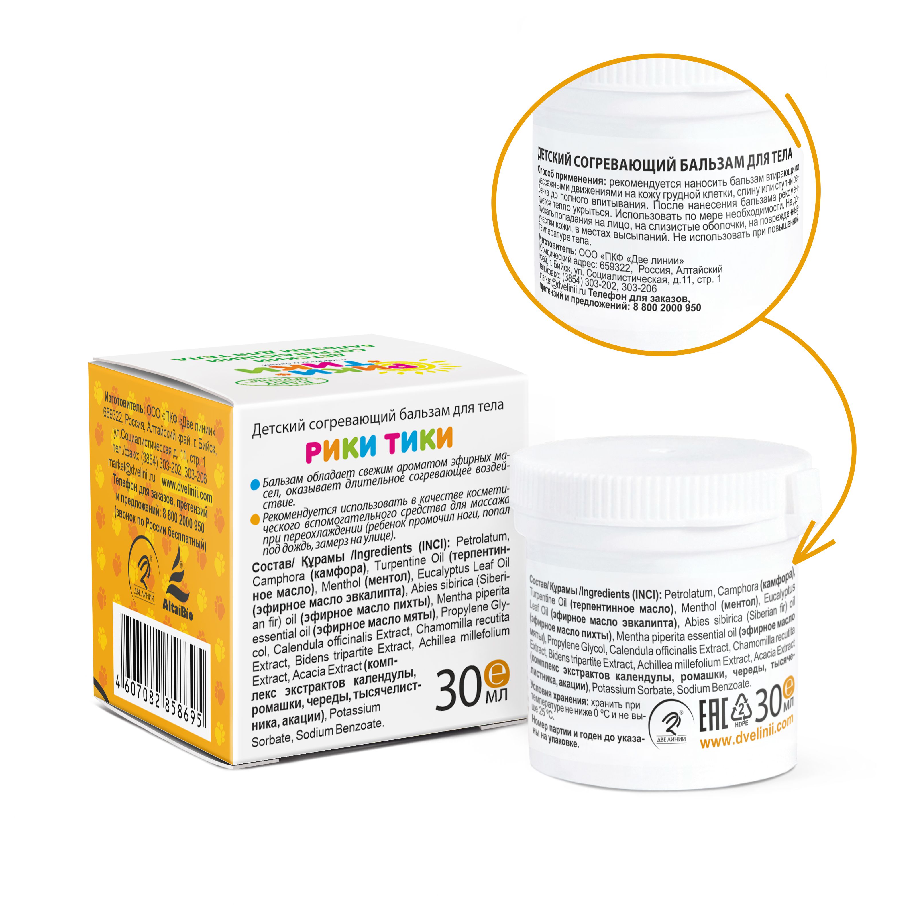 Рики-Тики бальзам д/тела д/дет 2+ 30мл согревающий